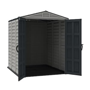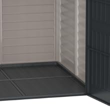 • Duramax YardMate PLUS 5 x 8 (4.28 m2) Plastic Garden Shed with Heavy-Duty Plastic Floor, Strong Metal Roof Structure, Fire Retardant & Maintenance-Free Storage Shed, Dark Grey & Adobe