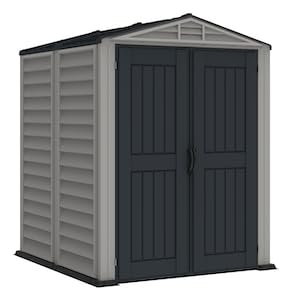 Duramax YardMate PLUS 5 x 8 (4.28 m2) Plastic Garden Shed with Heavy-Duty Plastic Floor, Strong Metal Roof Structure, Fire Retardant & Maintenance-Free Storage Shed, Dark Grey & Adobe