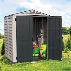 Home / All Products / Duramax YardMate PLUS 5 x 8 (4.28 m2) Plastic Garden Shed with Heavy-Duty Plastic Floor, Strong Metal Roof Structure, Fire Retardant & Maintenance-Free Storage Shed, Dark Grey & Adobe