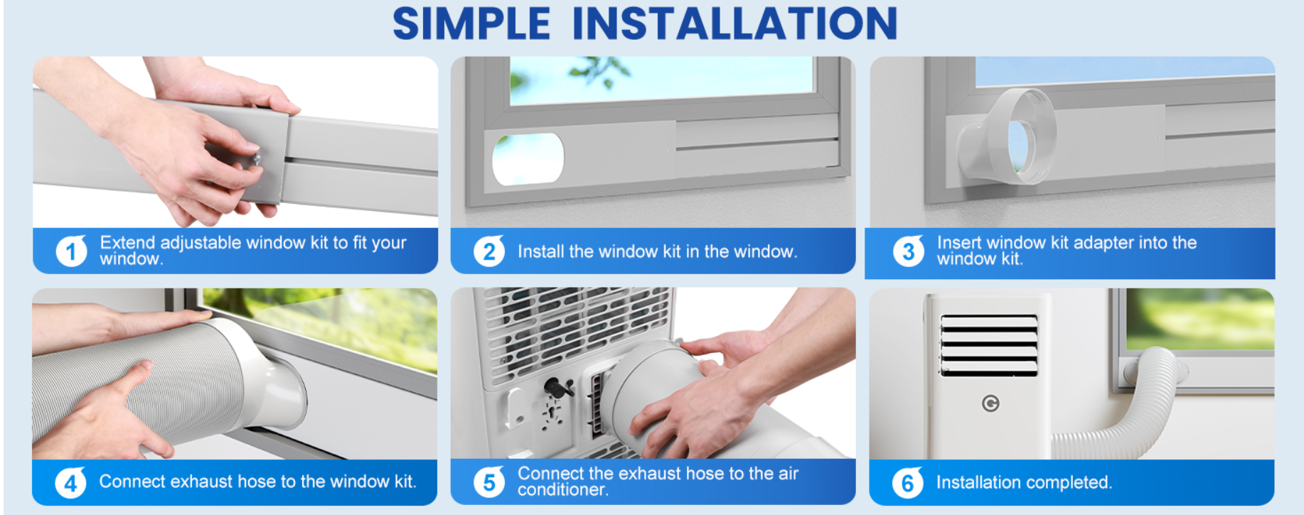 - 🆒【Smooth Move & Effortless Assembly】This air conditioner is designed with two built-in handles and four 360° casters for room-to-room mobility effortlessly in bedroom, office or in the cabin around your home. We offer window kits that are compatible with most sliding windows, catering you an effortless installment without drilling. And our unique plug design behind simplifies storage and transportation of the air conditioner.