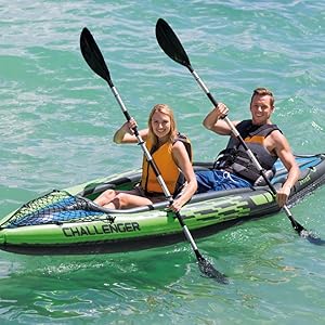 • Intex K2 Challenger Kayak 2 Person Inflatable Canoe with Aluminum Oars and Hand Pump