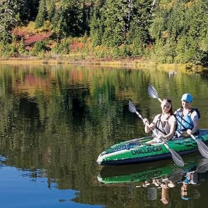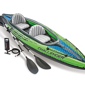 The Intex Challenger K2 Kayak is sporty and fun with a streamlined design for easy paddling. The bright green color and sporty graphics make the kayak highly visible in the water. Great for experiencing lakes and mild rivers solo, this Sports Series kayak is perfect for one adult. Lightweight and compact, this kayak is very easy to assemble and, with the Boston valve, it inflates and deflates in minutes. You can take the fun of kayaking wherever you go.