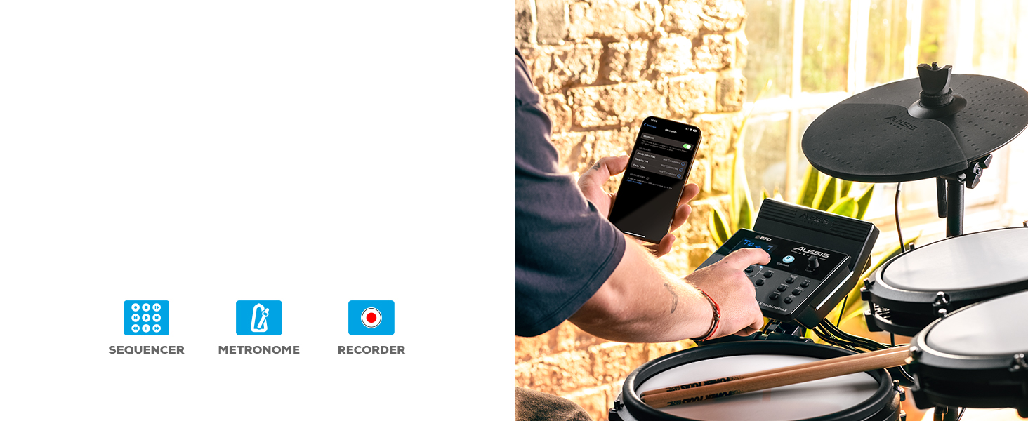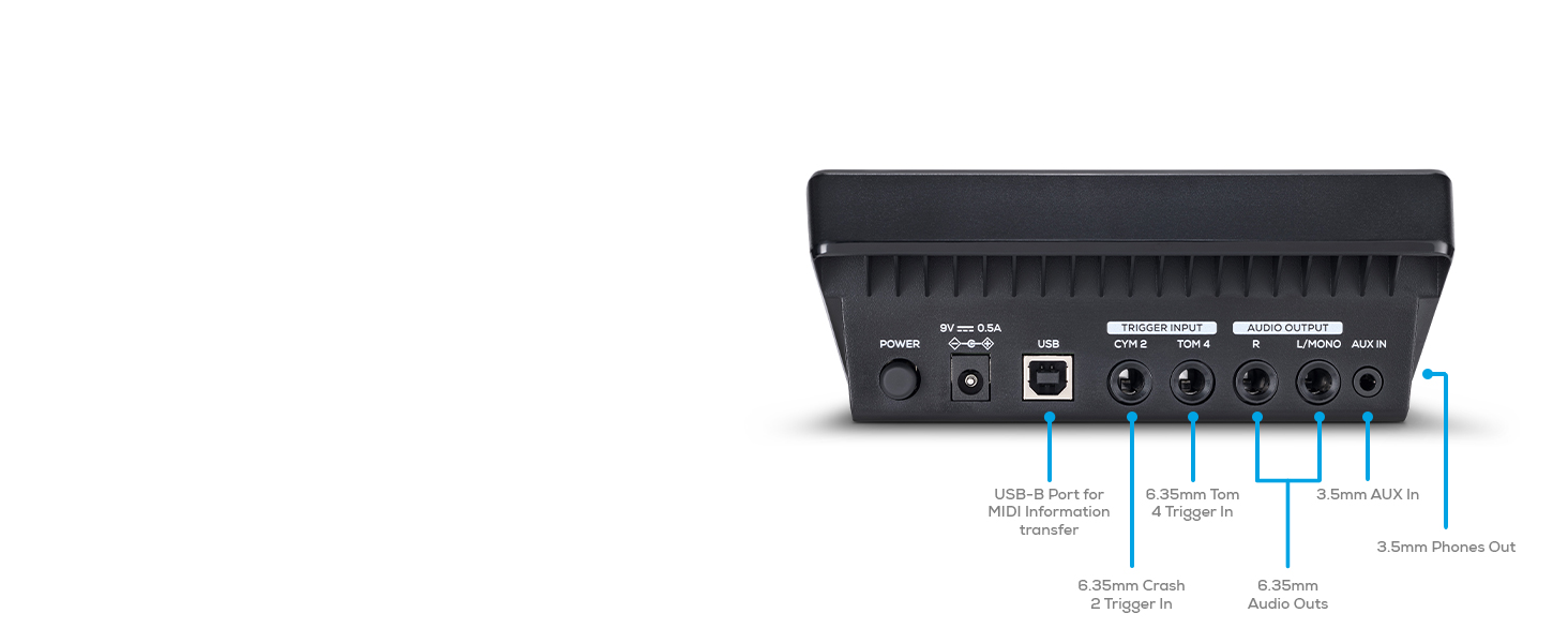 • Create and Customize Your Own Kits – Upgraded Drum Module with 32 ready-to-play BFD kits, 16 user-made kits & 440+ drum, cymbal & percussion sounds and multi-velocity samples for a real acoustic drum sound