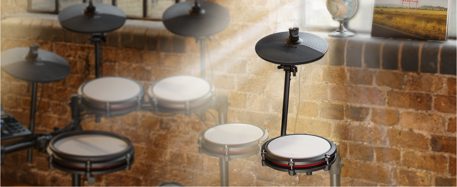 • Genuine Performance Feel - Now bigger 10” dual-zone mesh snare, (3) 8” mesh toms, kick drum tower with pedal and (3) 10" cymbals: ride, hi-hat with foot controller, crash with choke, on a solid foldable rack