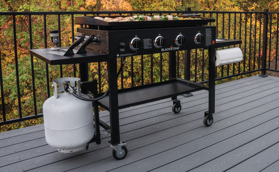 • NEW FEATURES - This unit comes equipped with Blackstone's new and improved side shelf giving the user a removable cutting board, convenient paper towel holder, and strategically placed trash bag hooks. PLUS Blackstone's new rear grease management system to help eliminate mess.