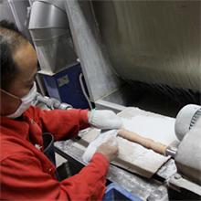 After molding consistently round hemispheres, artisans apply map gores to our bar globe by hand. These individual slices of replica Italian maps cover both the interior and exterior of the liquor cabinet.