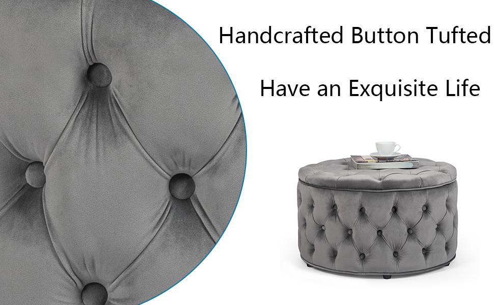 DURABLE PREMIUM VELVET :Use high-grade velvet, bring a luxurious look to your living room.50mm thickened sponge upholstered button tufted padding gives great seating comfort.Easy Care - wipe clean with a damp cloth and allow to air dry